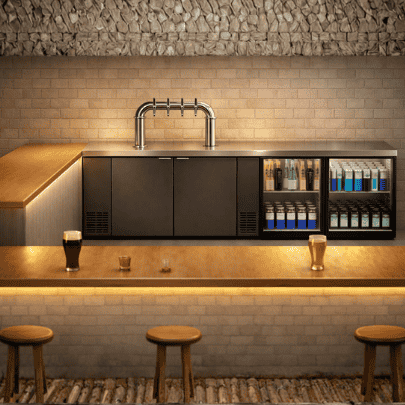 Su diseño permite integrarse fácilmente detrás de la barra junto al dispensador de cerveza, manteniendo proporciones equilibradas y una alineación visual correcta en el frente de barra. Esto lo hace ideal para proyectos donde cada centímetro cuenta, como bares urbanos, restaurantes y tap rooms con alta rotación.