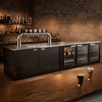 Más allá de enfriar botellas, el back bar adecuado ayuda a ordenar el flujo de trabajo, mejorar la estética del frente de barra y mantener una coherencia visual cuando se combina con el dispensador de cerveza.