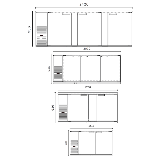 Estas combinaciones han sido definidas considerando el ancho del equipo, la distribución del área de servicio y la experiencia operativa detrás de la barra.