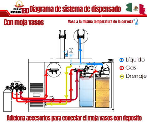 Lo primero que debes de saber es que el dispensador de cerveza ya incluye él, moja vasos desde la versión M al XL (S, Slim, SM solo bajo petición) esto quiere decir que ya no debes de preocuparte por donde ponerlo, ya que dentro de la charola (recoge gotas), tienes este práctico accesorio.