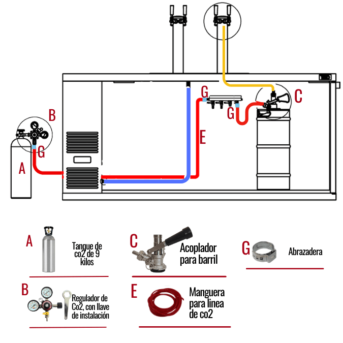 Como puedes ver los accesorios van más allá que el gabinete y la torre y se puede volver complejo si no estás familiarizado con estos dispensadores de cerveza de barril, para facilitar esto siempre preguntas las diferentes y prefiere las que esta complemente equipados para que solo te encargues de ganar dinero con ello, aquí puedes como se arma un dispensador de cerveza.