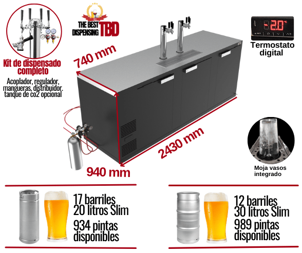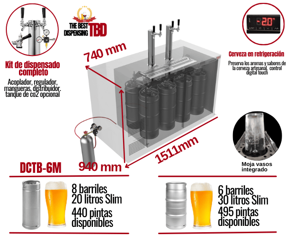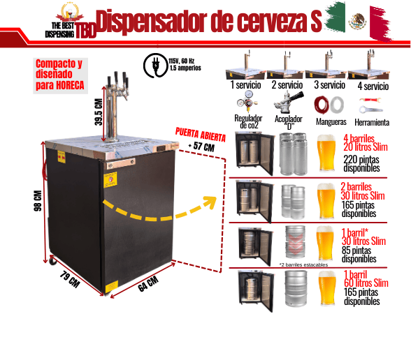 Un dispensador de cerveza es un sistema diseñado para almacenar, enfriar y servir cerveza de barril manteniendo su sabor, carbonatación y estabilidad. A diferencia de un kegerator doméstico, un equipo comercial está construido para operar durante horas continuas, mantener temperaturas constantes entre 0 y 4 °C, y ofrecer un flujo de cerveza estable incluso en momentos de alta demanda.
