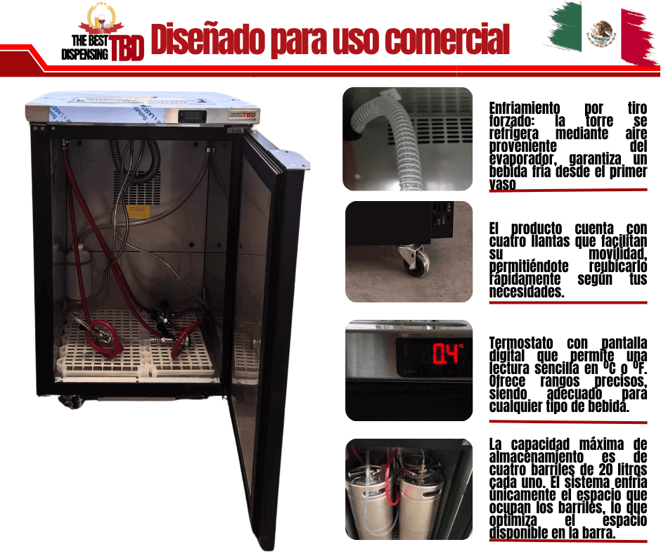 Un dispensador con estas características no solo preserva la calidad de la cerveza artesanal, sino que también representa una inversión segura para bares, restaurantes y cervecerías que buscan confiabilidad y durabilidad.