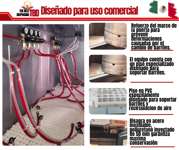 Interior en acero inoxidable → protege los barriles, evita la corrosión y prolonga la vida útil del equipo.
