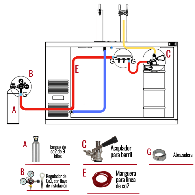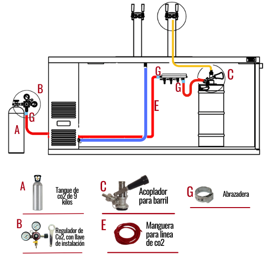 Para completar un dispensador de cerveza de barril y que funcione correctamente, necesitarás adquirir: