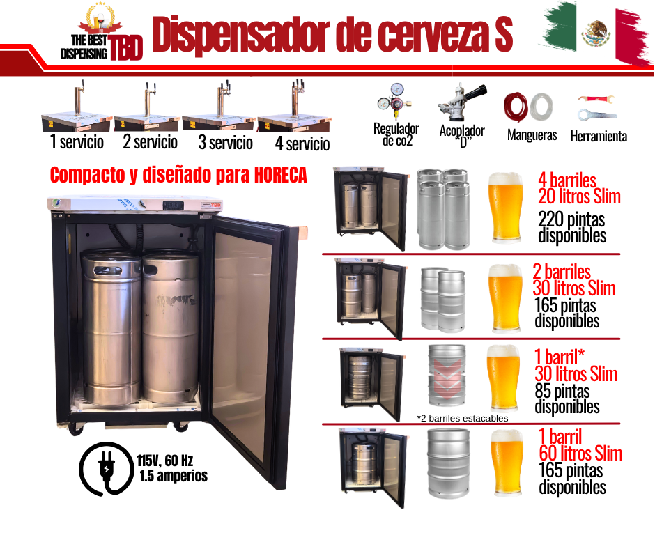 Un dispensador de cerveza es el sistema que enfría, mantiene y sirve la cerveza directamente desde el barril.